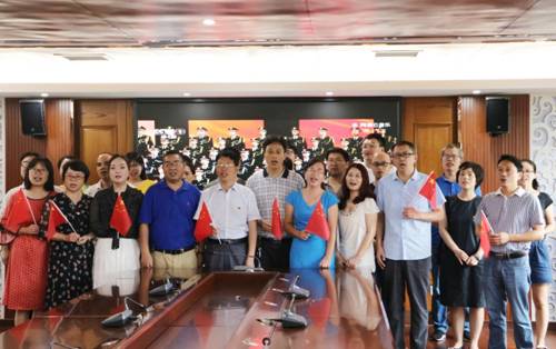 在党课开始之前,全体党员重温入党誓词并合唱《没有共产党就没有新中国》,歌颂党的丰功伟绩,抒发对党的挚爱与深情,庆祝中国共产党成立98周年。